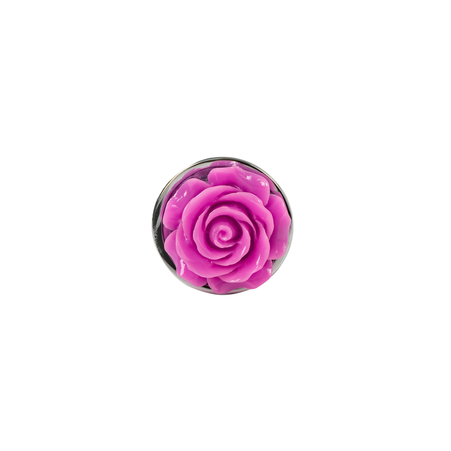 Fabricado con material metálico resistente y seguro para el cuerpo, ofrece una superficie lisa que se desliza suavemente al usar lubricante adecuado. En su base, destaca una delicada rosa decorativa, un detalle elegante que convierte este plug en una pieza sensual y visualmente atractiva.